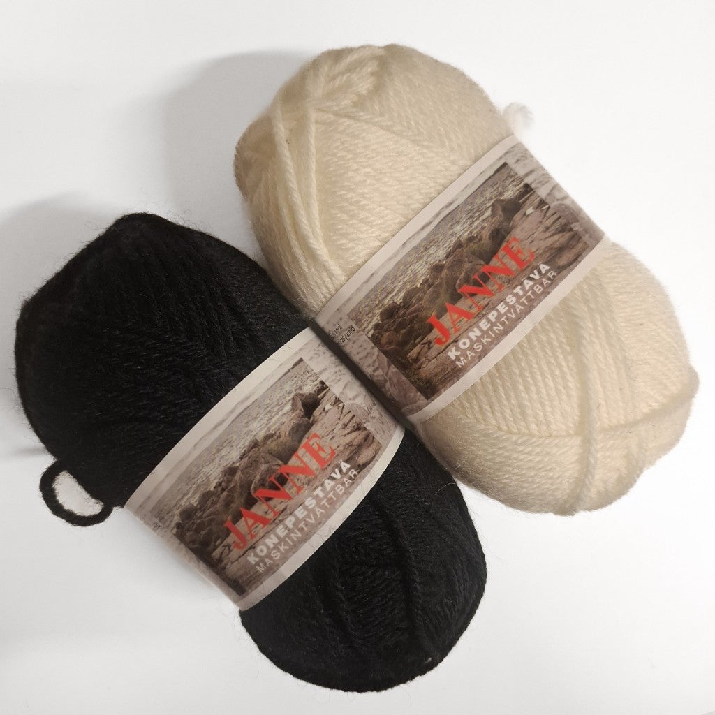 Janne on kiva ja kestävä peruslanka. Toimii hyvin yhteen Skeinfinityn 8ply paksuisten lankojen kanssa. (Glittersukka 8ply, sukkanen 8ply etc...)